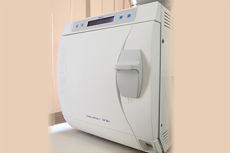 高圧力と高温の水蒸気により、細菌・ウイルスを死滅させる器械です。機材の滅菌を徹底し、清潔・安全な環境で治療をします。